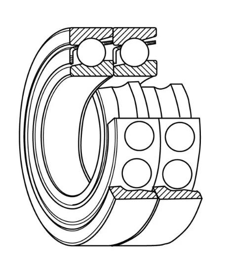 雙聯(lián)軸承是具有“內(nèi)置”預(yù)緊力的配對軸承,內(nèi)圈或外圈表面已經(jīng)研磨到一個(gè)被稱為“預(yù)緊偏移”的精確尺寸,當(dāng)施加特定的軸向預(yù)緊時(shí),該偏移對應(yīng)于套圈的軸向移動,當(dāng)軸承在裝配時(shí)被夾緊在一起時(shí),偏置面鄰接,從而在軸承組中建立永久的剛性預(yù)緊。