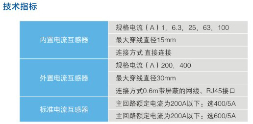 本產品可根據現場需要及電流范圍來選擇電流互感器,共有內罝電流互感器、外罝電流互感及標準電流互感器三種。